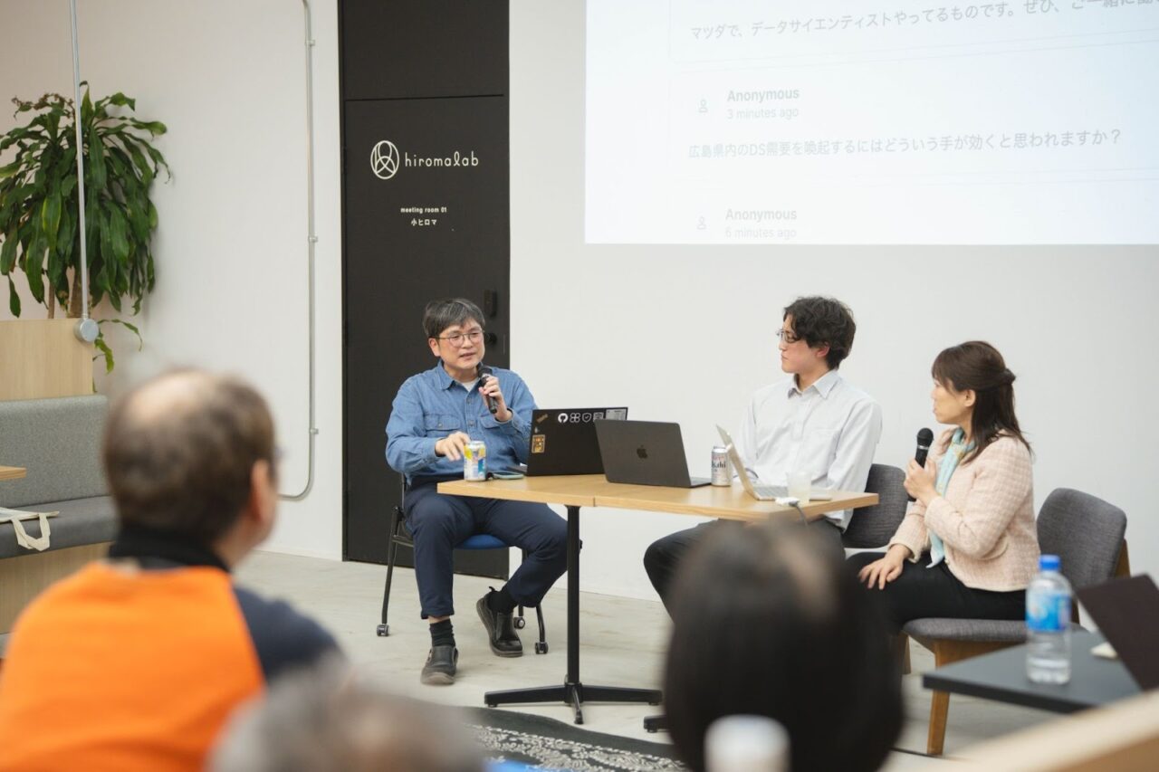 後半には、「地元・広島でどんなデータサイエンティストを目指してキャリアを築いていくべきか」という等身大の悩みを打ち明けてくれました。データサイエンスの専門性を突き詰めていくべきか、あるいは他の分野と掛け合わせられるように簿記などの知識を習得し、ビジネス側に寄った幅広いスキルを身につけていくべきか。